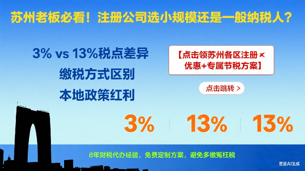 在苏州注册公司的老板们常常纠结:刚起步该选小规模纳税人还是一般纳税人? 两者在税点、缴税方式、适用场景上差异明显,一旦选错可能多缴税、影响业务!作为深耕苏州财税市场 8 年的代办机构,今天结合本地政策和实操经验,手把手教你避开注册坑。一、小规模 VS 一般纳税人:4 大核心区别对比(附苏州实操数据)区分维度小规模纳税人一般纳税人···...